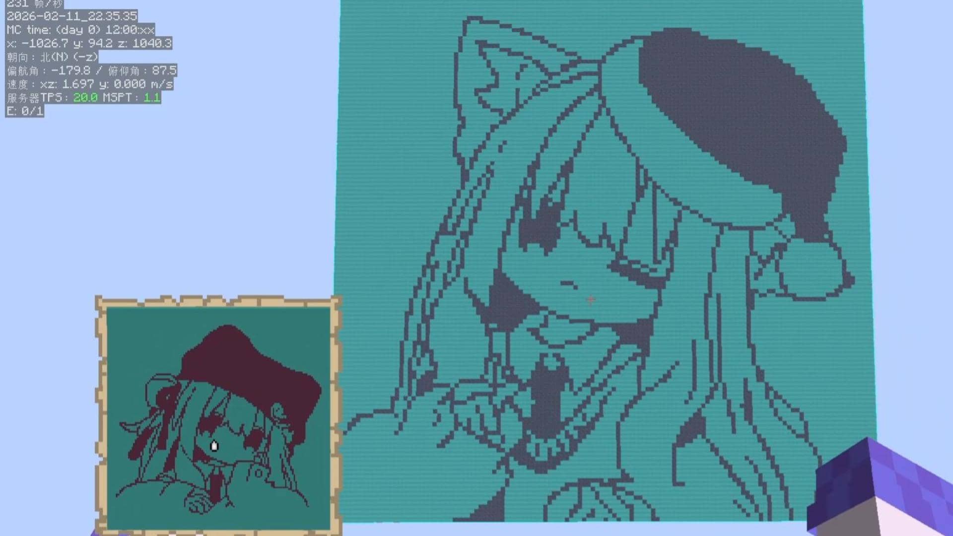 A tool to mix two images into a schematic file for Minecraft. Featuring the base colors of crimson_stem and warped_stem with their stripped variants, what players see is one image, while the map shows the other.
